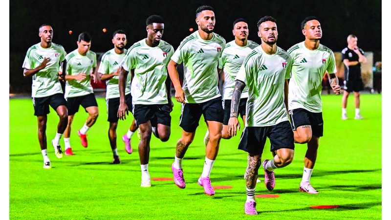 أجرى المنتخب الوطني الأول لكرة القدم تدريبه الختامي، أمس، على استاد جامعة قطر، استعداداً للمواجهة المرتقبة أمام نظيره القطري المقررة في الدوحة، مساء اليوم، ضمن الملحق الآسيوي المؤهل إلى نهائيات كأس العالم 2026. وشهدت الحصة التدريبية مشاركة جميع اللاعبين، في حين تأكد غياب يحيى الغساني لعدم جاهزيته بسبب الإصابة التي تعرض لها خلال مواجهة عمان الماضية. وظهر لاعبو المنتخب بحالة معنوية مرتفعة، وسط أجواء من التركيز والحماس والرغبة في تحقيق نتيجة إيجابية تضمن مواصلة مشوار التأهل العالمي. وقد حرص الجهاز الفني بقيادة الروماني أولاريو كوزمين على توجيه تعليمات دقيقة للاعبين خلال المران، حيث ركز على تصحيح الأخطاء التي ظهرت في المباراة السابقة، خصوصاً في الجوانب الدفاعية والتمركز داخل منطقة الجزاء، إلى جانب تحسين دقة التمريرات وسرعة التحول من الدفاع إلى الهجوم.
