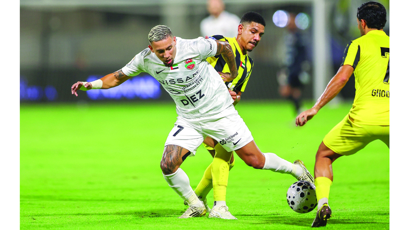 بالا يقود هجمة لشباب الأهلي نحو مرمى كلباء. تصوير: زيشان أحمد