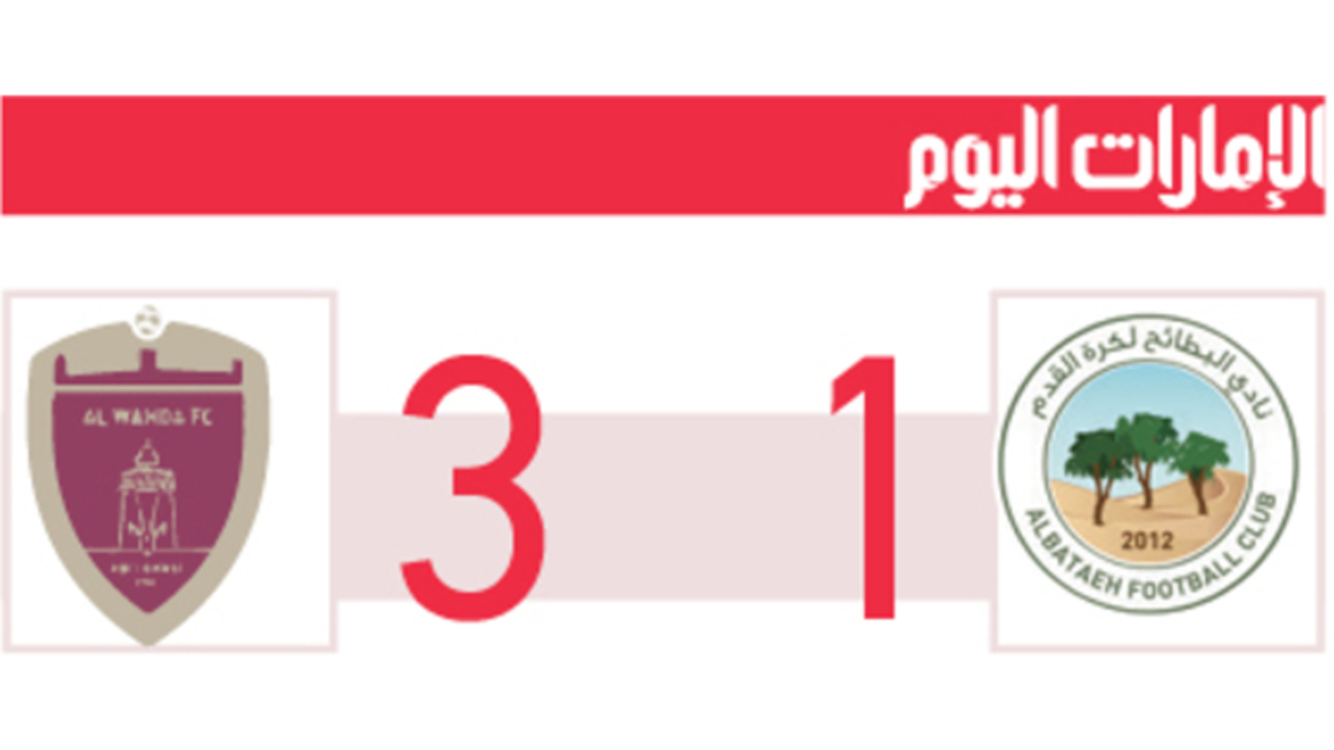 صعد الوحدة إلى صدارة دوري أدنوك للمحترفين لكرة القدم «مؤقتاً»، بعد فوزه خارج قواعده على البطائح 3-1، أمس، في افتتاح الجولة السادسة، ليرفع رصيده إلى 14 نقطة، متقدماً بفارق نقطة واحدة عن العين الذي يمتلك فرصة استعادة القمة في حال فوزه على بني ياس في ختام الجولة اليوم، بينما تجمد رصيد البطائح عند ثلاث نقاط فقط في المركز الـ12.