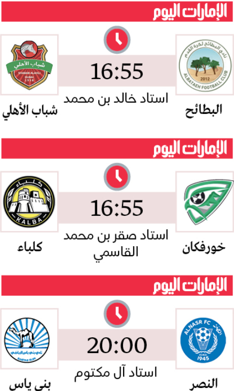 شباب الأهلي يدافع عن اللقب أمام البطائح.. والنصر في اختبار بني ياس