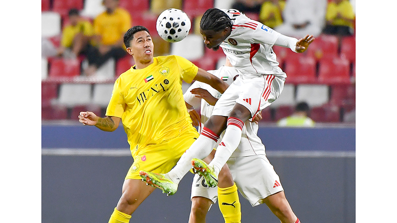 نجم الجزيرة كوليبالي يقطع كرة هوائية أمام لاعب الوصل سالدانا. تصوير: إريك أرازاس