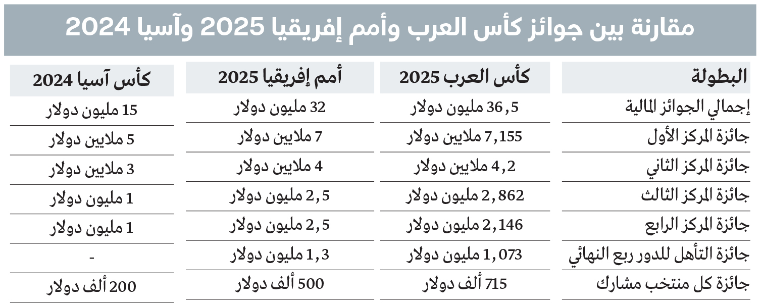 الجوائز المالية لكأس العرب أعلى من أمم إفريقيا وكأس آسيا
