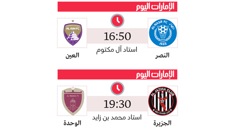 النصر والجزيرة يستقبلان العين والوحدة ذهاباً
