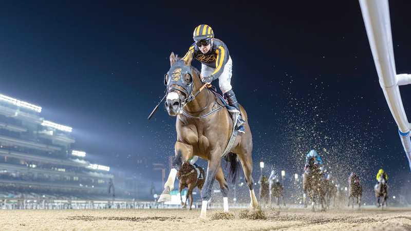 الجواد «درووز غولد» توج بلقب الشوط الرئيس في رابع أمسيات «كرنفال سباقات دبي» في «ميدان». من المصدر