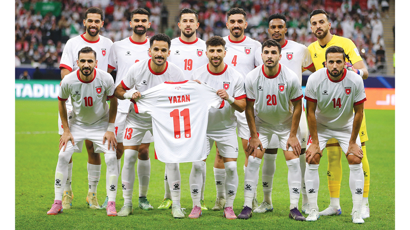 وقبل انطلاق المباراة، التقط لاعبو الأردن صورة جماعية وهم يحملون قميص زميلهم النعيمات.