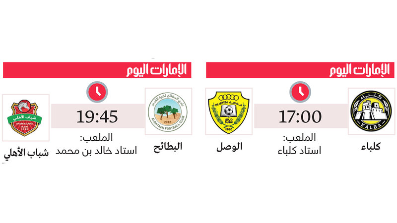 كلباء يلتقي الوصل.. وشباب الأهلي ضيف ثقيل على البطائح