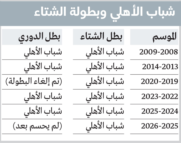 وتوَّج «الأحمر» بلقب الشتاء في مواسم 2008-2009، و2013-2014، و2019-2020، و2022-2023 و2023-2024، وفي جميع المواسم التي أحرز فيها اللقب الشرفي توَّج لاحقاً بلقب الدوري، باستثناء نسخة 2019-2020 التي أُلغيت بسبب جائحة «كوفيد-19».