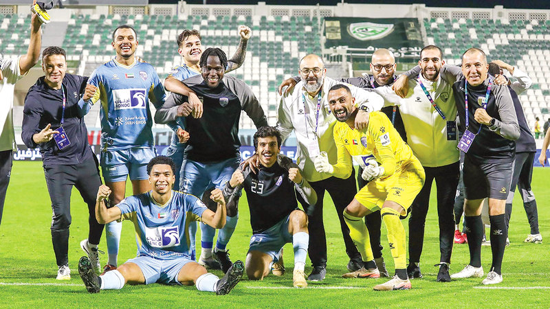 أمجد السيد يحتفل مع فريقه الظفرة بالفوز على خورفكان في الجولة الـ11. من المصدر