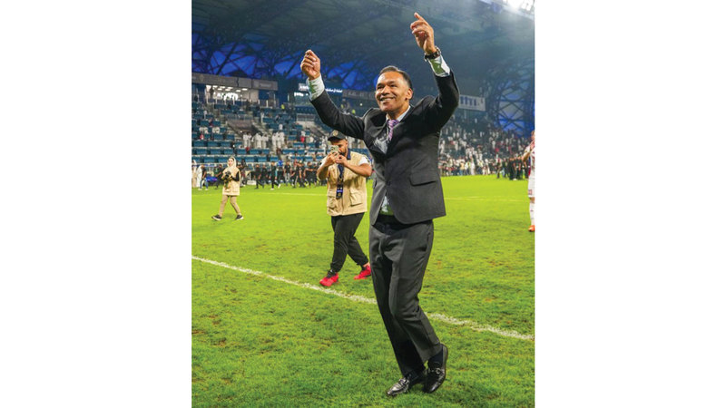مورايس رقص فرحاً بعد قيادته الشارقة للفوز بلقب ثانٍ الموسم الجاري. من المصدر