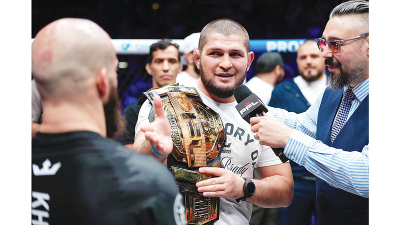 أسطورة الفنون القتالية المختلطة حبيب نورمحمدوف يقود فريقه في نزال «الطريق إلى دبي». من المصدر