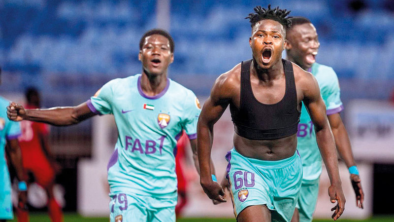لاعب العين جوناس نافو يحتفل بتسجيل هدف الفوز في شباك سترة البحريني. الإمارات اليوم