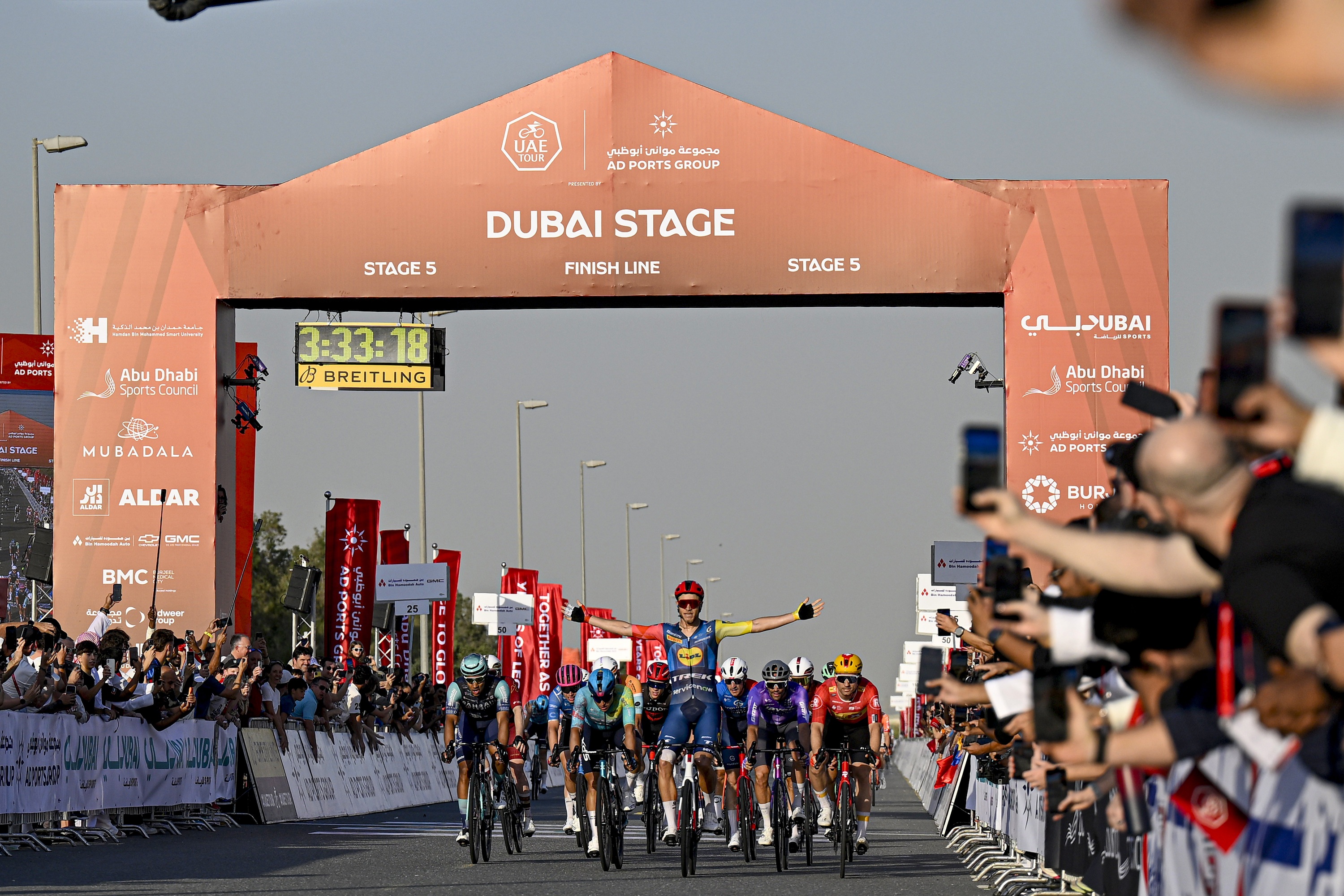 حقق الإيطالي جوناثان ميلان فوزه الثاني على التوالي بتتويجه بلقب المرحلة الخامسة (مرحلة دبي) اليوم الجمعة، من طواف الإمارات 2026، الذي يقام بتنظيم مجلس أبوظبي الرياضي وبرعاية مجموعة موانئ أبوظبي، وتستمر منافساته حتى 22 فبراير الجاري.