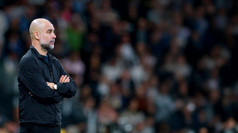 غوارديولا مطالب بالفوز بفارق 4 أهداف لتجنّب وداع دوري الأبطال. رويترز