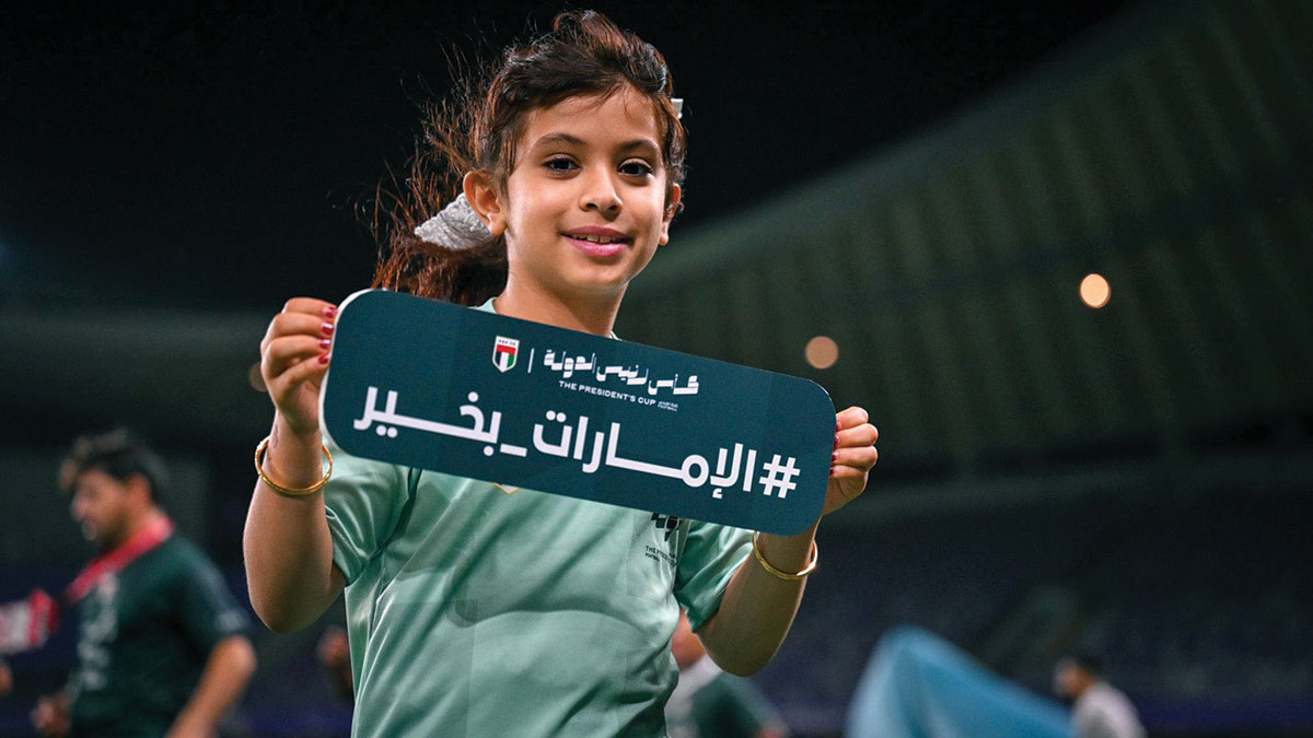 وامتلأت مدرجات الملعب بالجماهير التي حضرت مبكراً، رافعة لافتات عبّرت عن مشاعر الولاء والانتماء، حيث كُتب عليها عبارات مثل «الإمارات بخير» و«كلنا جنودك يا وطن» و«في الإمارات الكل إماراتي» و«رحم الله شهداء الوطن»، لتشكّل هذه العبارات رسالة وفاء وتقدير للوطن وقيادته وشهدائه.