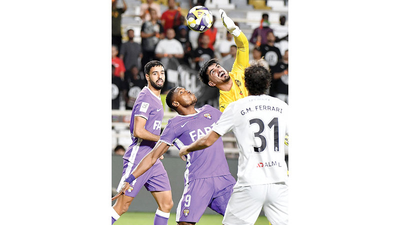 حارس مرمى يونايتد عنايات نور يتصدى لإحدى الكرات في مباراة العين. تصوير: إريك أرازاس