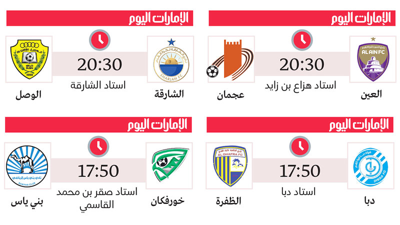 مهمة صعبة للشارقة أمام الوصل.. ودبا وخورفكان يستقبلان الظفرة وبني ياس في الجولة الـ 21