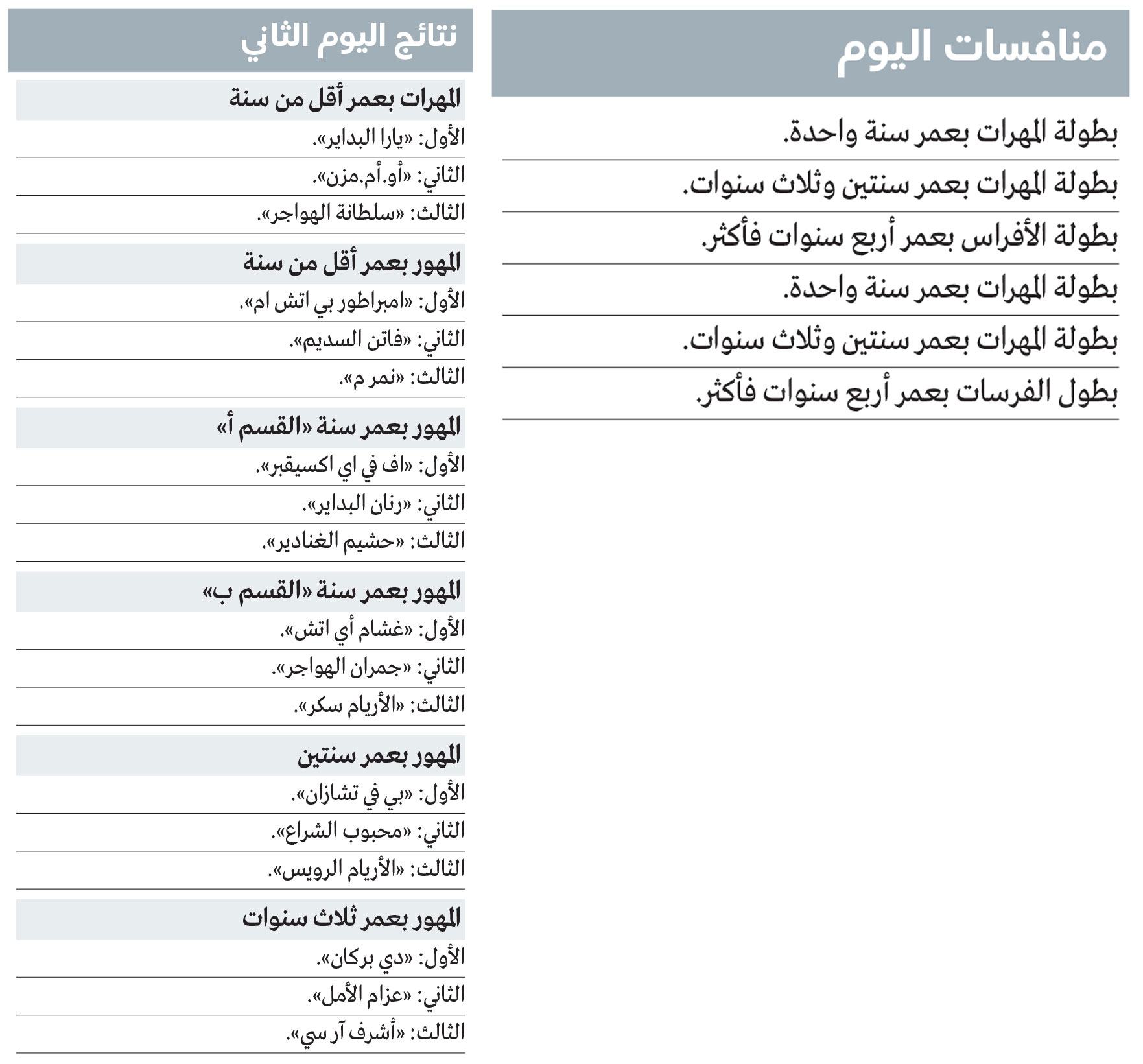 البطولة تشهد مشاركة واسعة من نخبة الملاك والمربين والمهتمين بالخيول العربية. وام