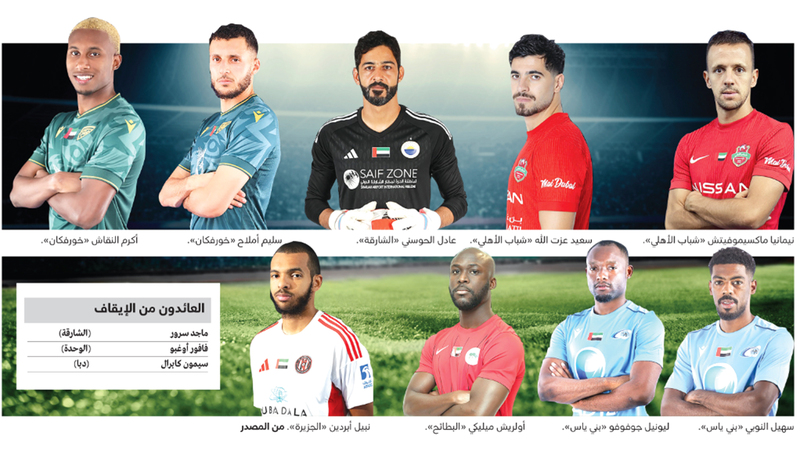 في المقابل، تشهد الجولة عودة عدد من اللاعبين بعد انتهاء الإيقاف، يتقدمهم ماجد سرور إلى صفوف الشارقة، وفافور أوغبو إلى الوحدة، إلى جانب عودة سيمون كابرال إلى صفوف دبا.