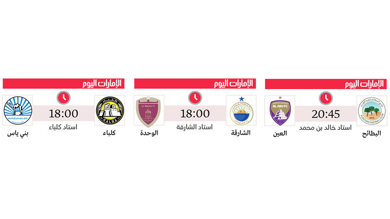 وتُستكمل الجولة، غداً، حيث يستقبل الظفرة منافسه عجمان، ويواجه الوصل ضيفه دبا، ويحل الجزيرة ضيفاً على النصر، فيما تأجلت مباراة شباب الأهلي وضيفه خورفكان إلى الأربعاء المقبل.