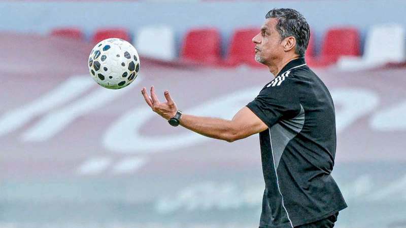 مدرب الوحدة حسن العبدولي خلال مباراة الشارقة. تصوير: باتريك كاستيلو
