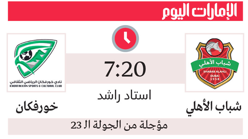 ويخوض «فرسان دبي» تحدياً مهماً عندما يواجهون خورفكان، في الساعة 7:20 من مساء اليوم، على استاد راشد بدبي، ضمن المباراة المؤجلة من الجولة الـ23 لدوري المحترفين.