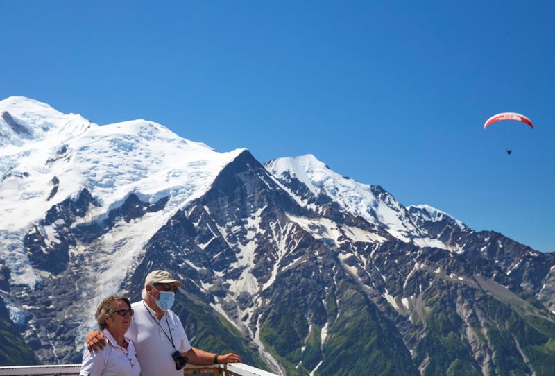 استقبلت قمة مون بلان عدد كبير من الزوار والسياح بعد اشهر من الغلق بسبب فيروس كورونا .