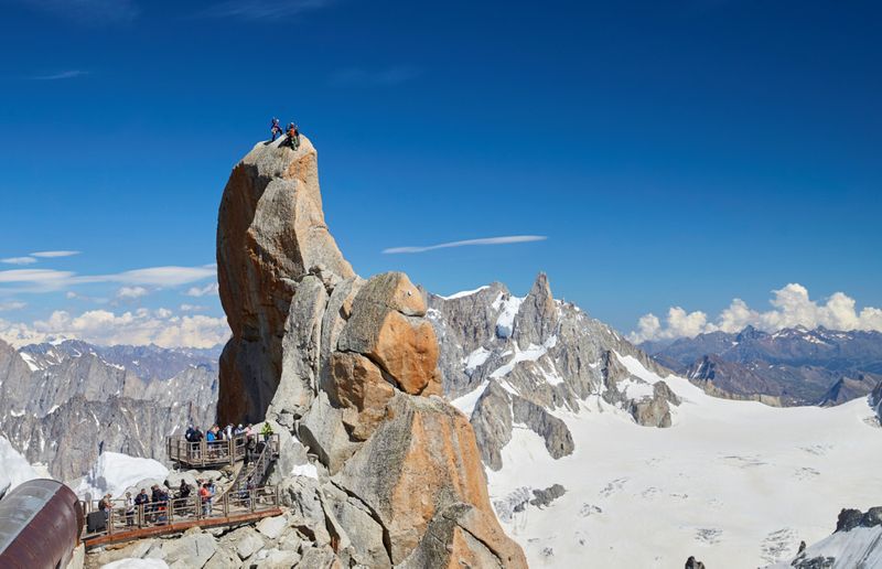 وتعد منطقة مون بلان من أروع المعالم الطبيعية في العالم تحوى أعلى قمة في جبال الألب ويشكل جزءاً من الحدود الفرنسية مع إيطاليا، ويصل ارتفاعها إلى 4.810 متراً وتكون دائمة مغطاة بالثلوج مما يفسر سبب تسميته بـ”الجبل الأبيض”، ويمكن للمتسلقين من ذوي الخبرة الصعود إلى قمة مون بلان بصحبة مرشد، وعلى الرغم من كونه شاقًا للغاية ويستغرق من 10 إلى 12 ساعة ولكن المشهد البانورامي في القمة التي تعرف باسم “سقف أوروبا” يستحق المجهود.