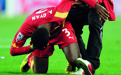 أصيب لاعبو منتخب غانا لكرة القدم الملقبين بـ«النجوم السوداء»، بصدمة كبيرة مع توديعهم منافسات بطولة كأس العالم 2010 بجنوب افريقيا بعد هزيمتهم بضربات الجزاء الترجيحية أمام أوروغواي ضمن منافسات دور الثمانية بالبطولة.