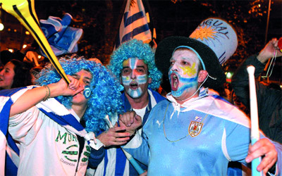 مشجعو الأوروغواي يحتفلون بالفوز. إي.بي.إيه