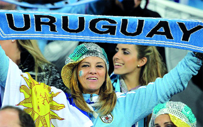 ربما خسرت الأوروغواي شرف احتلال المركز الثالث بنهائيات كأس �'لعالم لكرة القدم بجنوب إفريقيا، إثر الهزيمة 2/3 أمام ألمانيا، أول من أمس السبت، ولكن ذلك لم يمنع الجماهير من الاحتفال بشكل صاخب وسط إشادة كبيرة بالأداء الراقي للفريق. وفي الوقت الذي تراجعت فيه أعداد المشجعين المحتفلين مقارنة بالمباريات الماضية، مازالت هناك أعداد ضخمة من المشجعين ارتدت القمصان ذات اللونين الأزرق والأبيض للمنتخب الوطني وخرجت إلى الشوارع معربة عن شكرها وفخرها بالمدرب أوسكار تاباريز واللاعبين الأبطال.