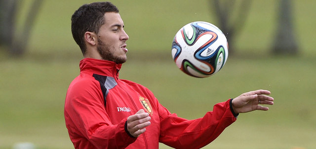 هازار أبرز نجوم بلجيكا في تدريبات قبل مباراة روسيا. أ.ف.ب