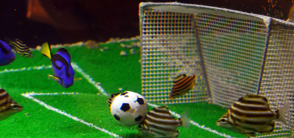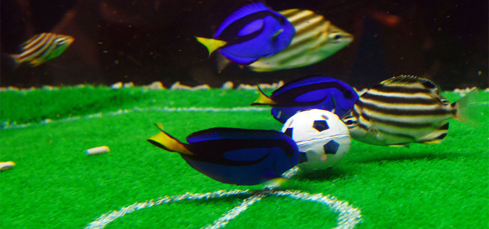 وعرضت فكرة المباريات بين الأسماك، بألوان المنتخبات حتى نهاية كأس القارات في البرازيل كنوع من الجذب للزوار.