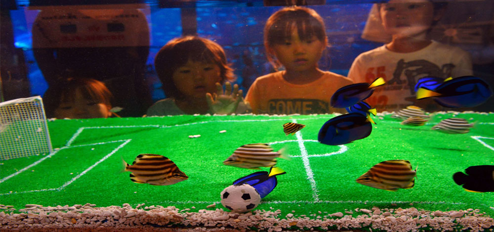 كترويج للمباراة المقبلة، بين منتخبي اليابان وكولومبيا، صُمم حوض للأسماك، ليشبه ملعباً في هاكيجيما قرب يوكوهاما في ضواحي العاصمة اليابانية طوكيو.