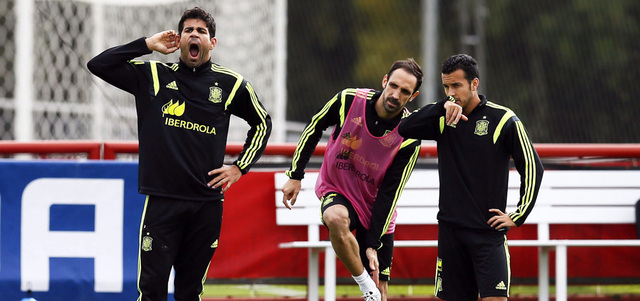 لاعب إسبانيا كوستا يتثاءب خلال التدريب الأخير في البرازيل. أ.ف.ب