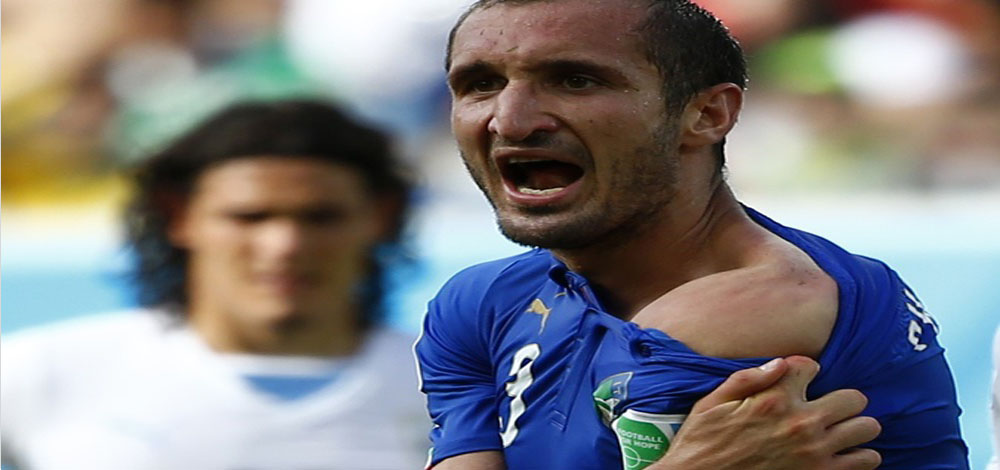 وحصل الأمر في الدقيقة 80 من مباراة ايطاليا مع الأوروغواي، وقد أظهر شريط الفيديو للوهلة الأولى، أن سواريز ضرب برأسه بطريقة عادية، كييليني، لكن أظهر التدقيق لاحقاً في شريط الفيديو، أن مهاجم ليفربول غرس اسنانه في كتف المدافع المنافس.
