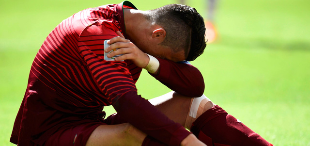 رونالدو سجل أول أهدافه في المونديال لكن دون فائدة بعد الخروج الحزين للبرتغال من الدور الأول. أ.ف.ب
