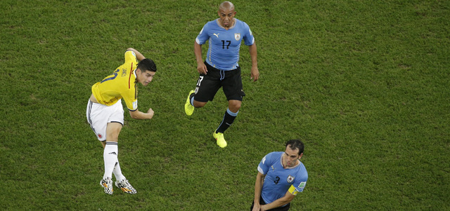 وقاد رودريغيز منتخب كولومبيا إلى ربع النهائي للمرة الأولى في تاريخه بتسجيله هدفي الفوز في مرمى الأوروغواي.