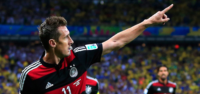 كلوزه سجل في شباك الأخضر في 2002 وعاد ليسجل في البرازيل في 2014. أ.ف.ب