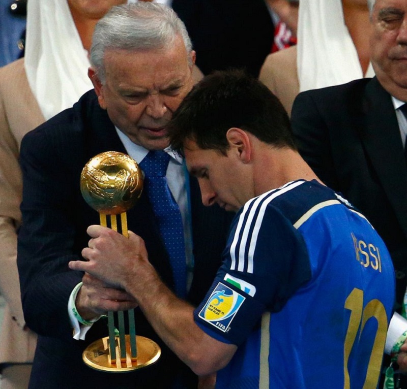 فيما دافعت لجنة توزيع جوائز مسابقة كأس العالم 2014 عن قرارها، وأكد جيرارد اوييه عضو اللجنة أن " الجماهير المنحازة لا يصوتون لميسي لانه تسبب لهم الكثير من الاحزان". واضاف اوييه " ميسي كان أكثر حسما في المباريات الاربعة الاولى ،كما كان القائد الفعلي للمنتخب الأرجنتيني في الميدان وصنع اللعب الجماعي الذي لم نره في الأرجنتين منذ زمن طويل وتصدى لأول ركلة جزاء في مباراة هولندا وسجلها، و نحن كلجنة ننظر في كل المباريات ، ونحكم على كل لاعب واهميته لفريقه ، هكذا قارننا بين المنافسين وهو اساس منحنا الجائزة " .