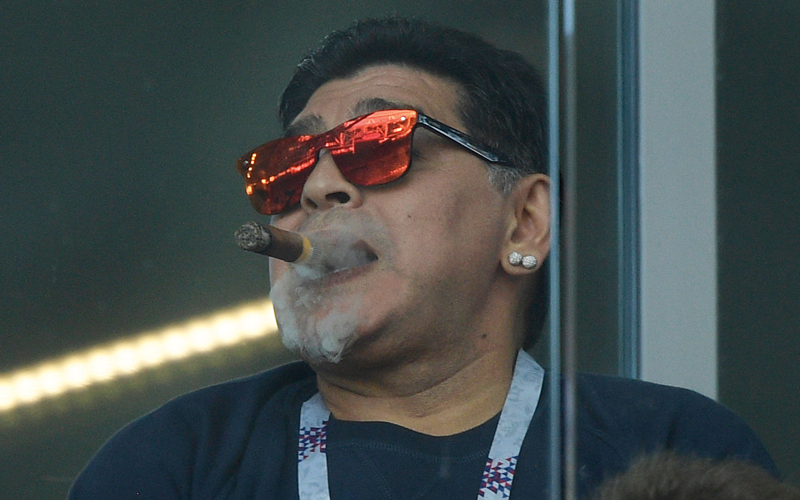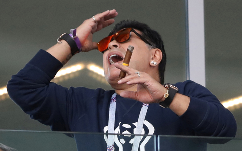 مارادونا يعتذر عن التدخين خلال مباراة الأرجنتين وآيسلندا