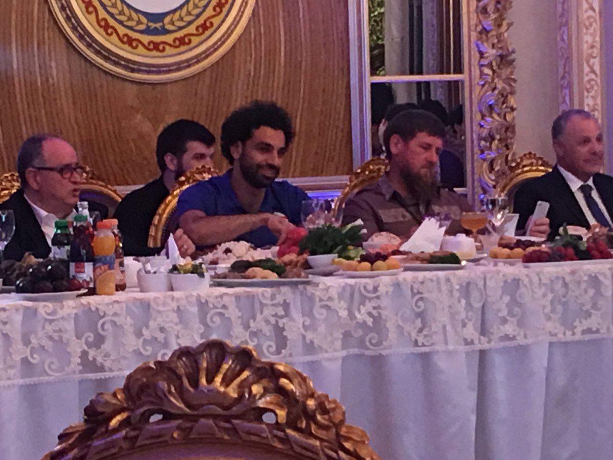 وكتب الحساب الرسمي للمنتخب المصري على تويتر تعليقاً على حفل الاستقبال "لبت بعثة المنتخب الوطني مساء اليوم دعوة الرئيس رمضان قادريوف رئيس جمهورية الشيشان على تناول العشاء في القصر الرئاسي، وذلك في ختام إقامتها بمدينة جروزني عاصمة الشيشان كمقر إقامة وتدريب لها خلال مشاركتها في بطولة كأس العالم ".