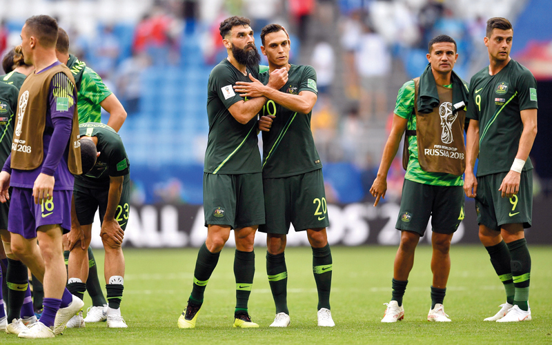 منتخب أستراليا لديه نقطة واحدة حصل عليها من التعادل أمام الدنمارك. أ.ب