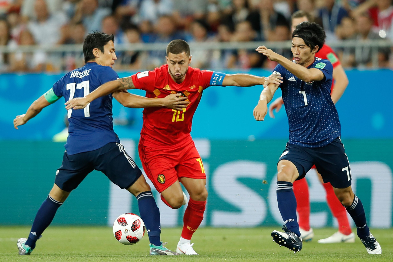 وعلى عكس مجريات المباراة وسيطرة بلجيكا عليها طولاً وعرضاً إلا أن اليابان سجلت هدف التقدم في الدقيقة 48 بواسطة هارجوتشي وقبل أن تستفيق من صدمة الهدف استقبلت شباكها الهدف الثاني بعد 4 دقائق وتحديداً في الدقيقة 52 بواسطة تاكاشي أينوي.