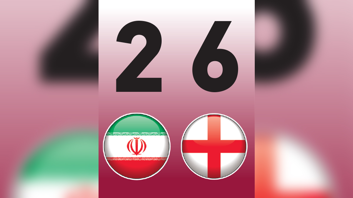 وفي افتتاح منافسات المجموعة الثانية، تناوب تسجيل أهداف «الأسود الثلاثة» كل من: جود بيلينغهام (35)، بوكايو ساكا (43 و62)، رحيم ستيرلينغ (45+1)، ماركوس راشفورد (71)، جاك غريليش (90)، فيما أحرز مهدي طارمي هدفي إيران (65 و90+13 من ركلة جزاء).