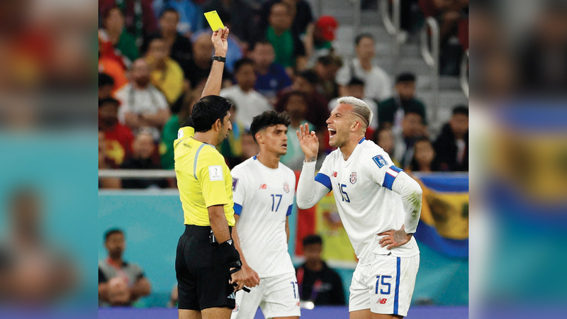محمد عبدالله حسن يخرج البطاقة الصفراء للاعب كوستاريكا كالفو. رويترز