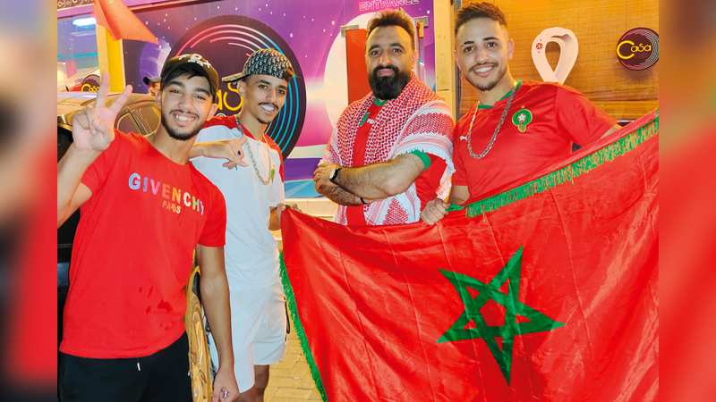 احتفلت جماهير مغربية مقيمة في الإمارات مساء أمس، بالفوز الكبير الذي حققه منتخب «أسود الأطلس» على بلجيكا في الجولة الثانية من مباريات المجموعة السادسة من مونديال 2022 في قطر.
