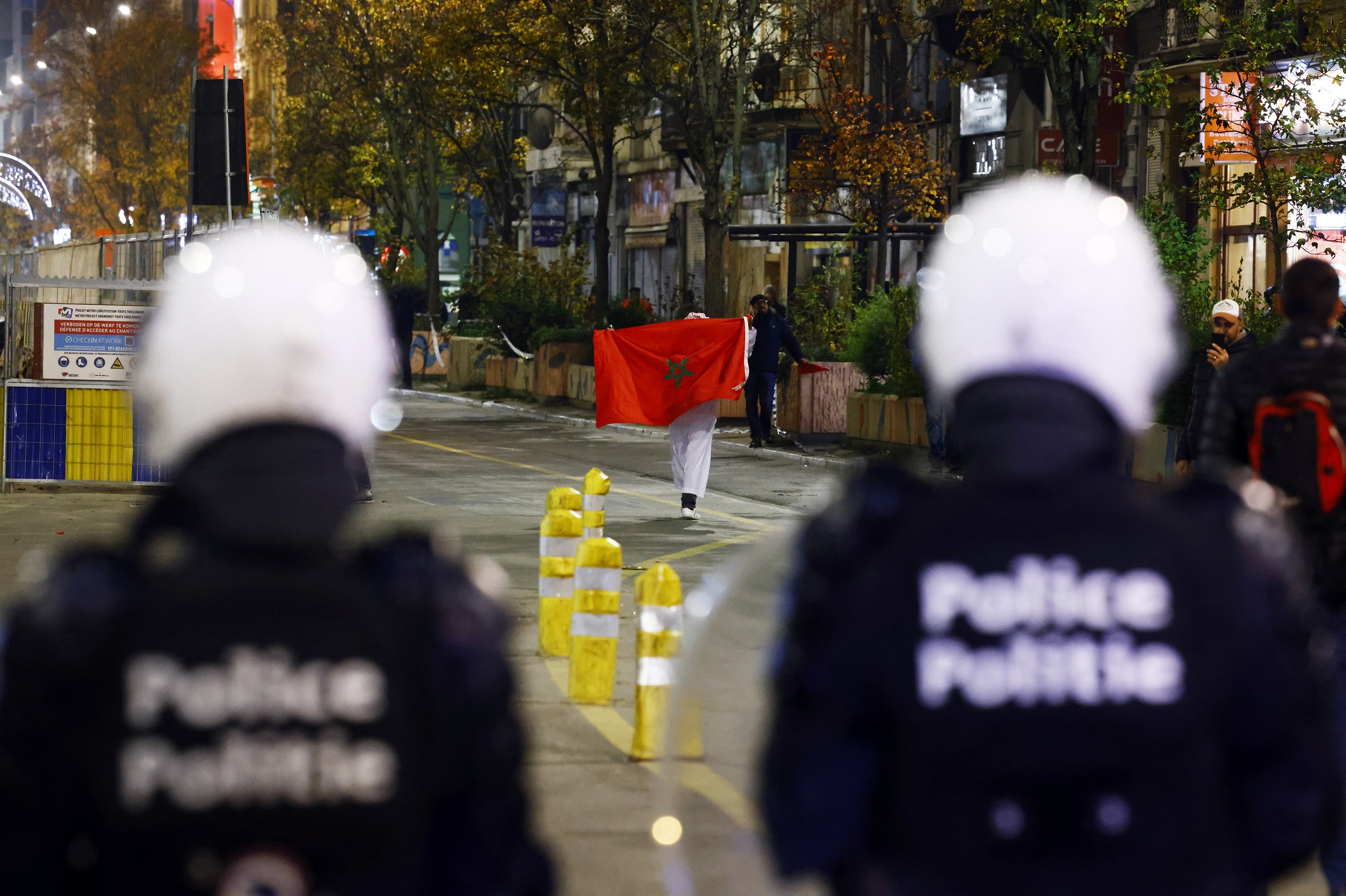 وكانت أعمال عنف تلت الأحد انتصار المغرب على بلجيكا في وسط العاصمة بروكسل حيث اشتبكت مجموعات صغيرة من الشباب مع الشرطة وسببت أضرارا مادية، على هامش تجمعات عفوية لمشجعي المغرب.