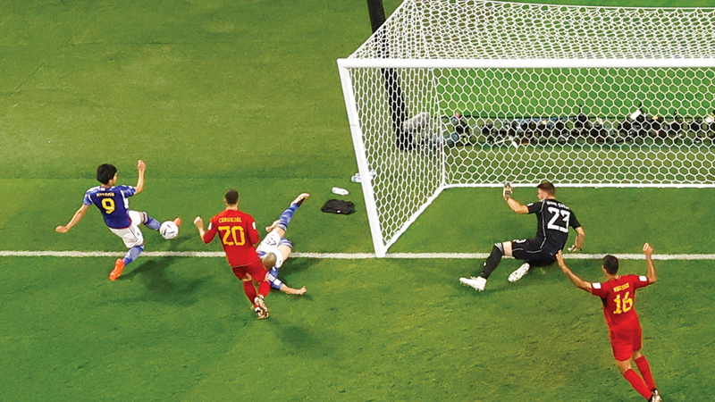 وأضاف العاجل لـ«الإمارات اليوم»: «(الفار) أثبت أن الكرة قبل تسجيل هدف اليابان الثاني لم تعبر خط المرمى والهدف صحيح». وأوضح: حسب قانون التحكيم إذا تجاوزت الكرة بكامل محيطها و«محيط الكرة هنا يعني الاستدارة»، وهو ما لم يحصل في هدف اليابان. وأشار إلى أن «الفار» يظل المرجع للحسم في هكذا جدل، ليؤكد صحة الهدف. وأكمل: «وجود تقنية الفيديو مهم في هكذا حالات تحكيمية صعبة، ولو لم تكن هذه التقنية لكانت الفرصة لكل فريق بأن يحتج على الحالة». لولا هدف اليابان الثاني في شباك إسبانيا، لكانت ألمانيا تأهلت إلى ثمن نهائي المونديال برفقة «الماتادور».