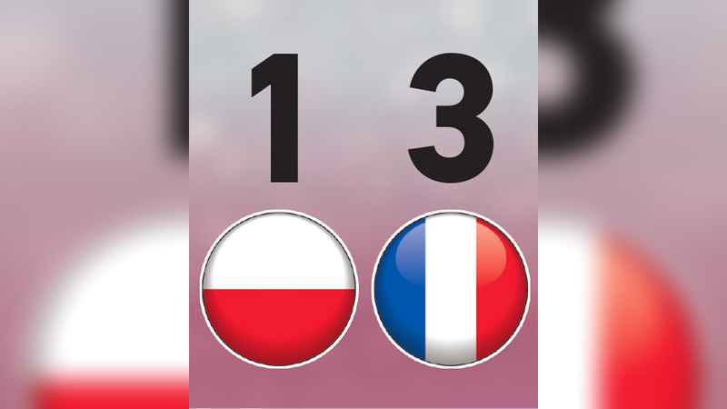 وصنعت بولندا، التي تظهر في الأدوار الإقصائية لأول مرة منذ 1986 وكانت تحلم بظهورها الأول في دور الثمانية منذ 1982، فرصة خطيرة في الشوط الأول، لكن خط وسط فرنسا منع إمداد المهاجم روبرت ليفاندوفسكي الذي قلص الفارق من ركلة جزاء في آخر تسديدة بالمباراة.