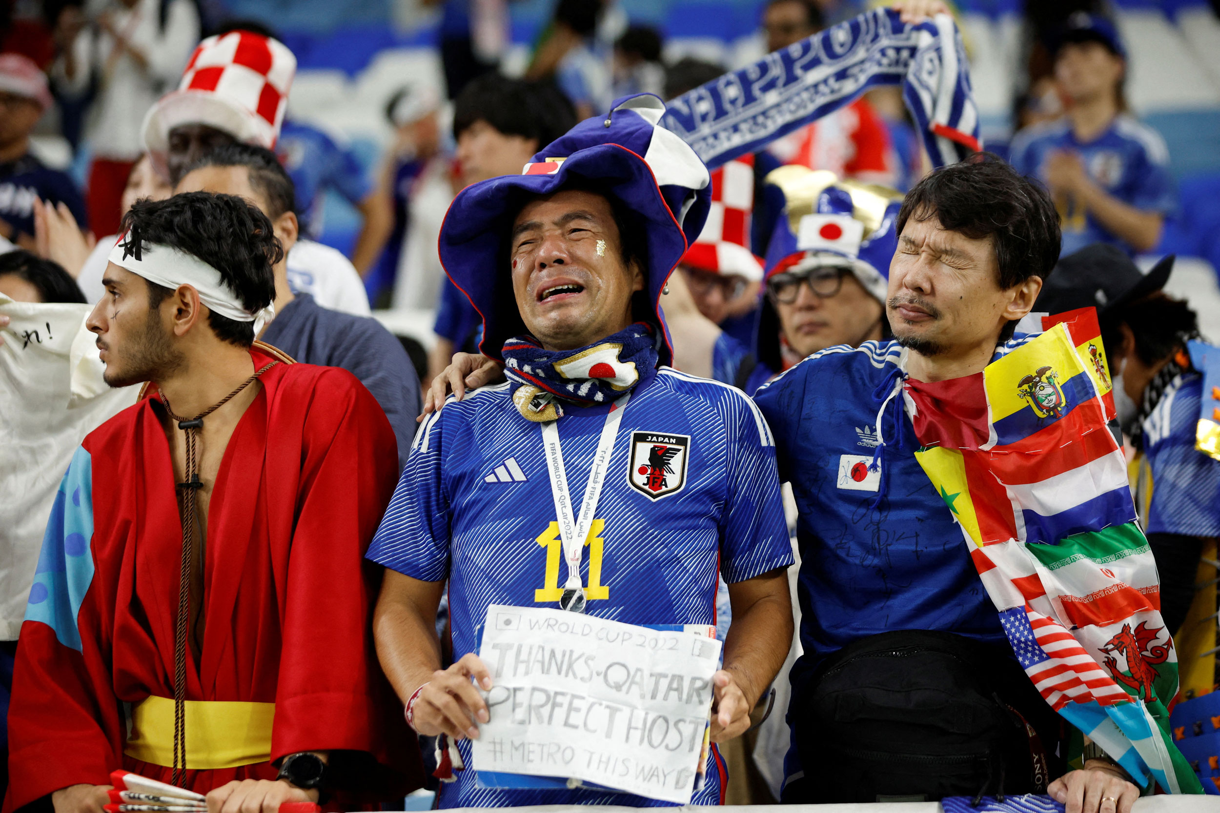 وشهد استاد الجنوب لقطات تدمي القلوب بعدما خيم الحزن على جمهور منتخب اليابان، بينما رد المدرب واللاعبون على الجمهور بالعادات والتقاليد التي يشتهر بها اليابانيون وهي الانحناء لتقدير الجهد الذي قام به الجمهور في مساندة الفريق.